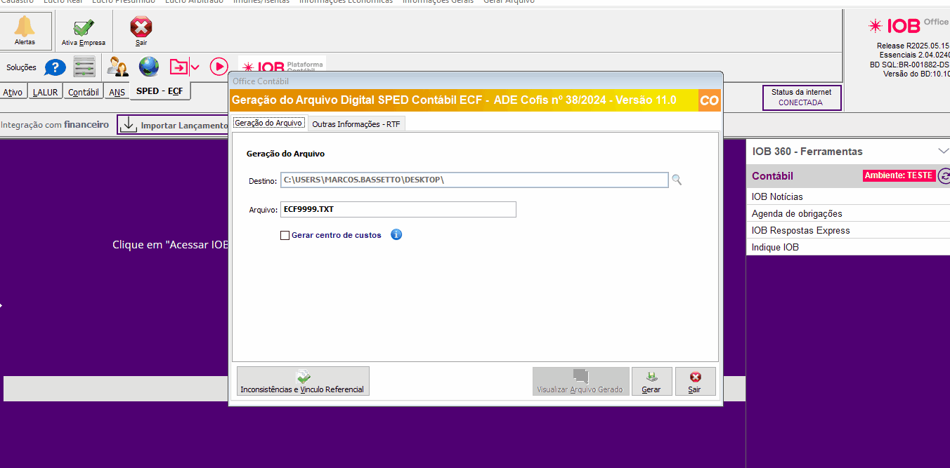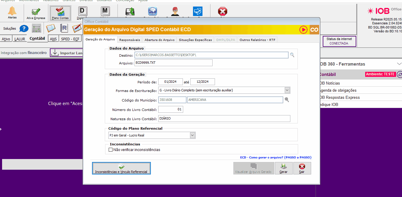 Acessar o menu " Diversos -> Sped-> ECD" e gere um arquivo
