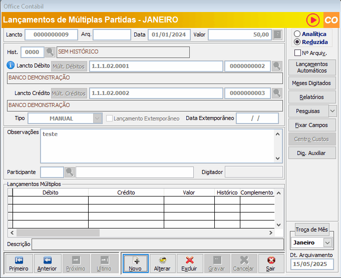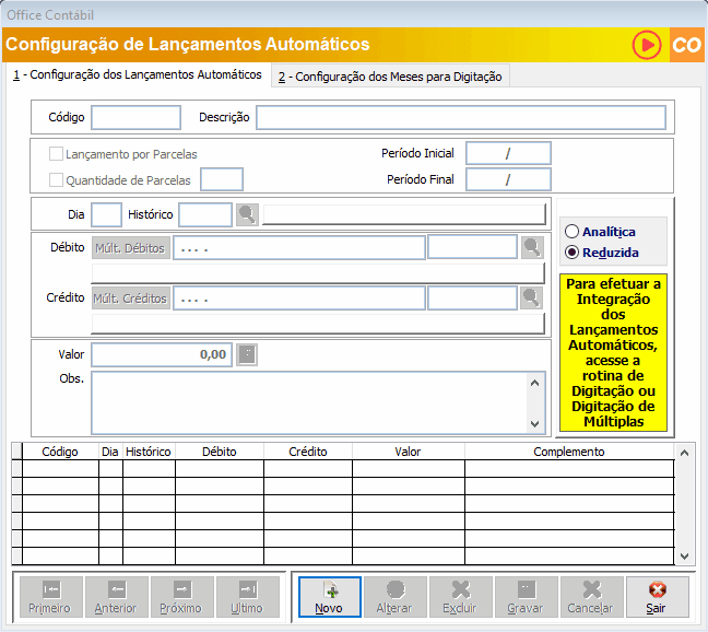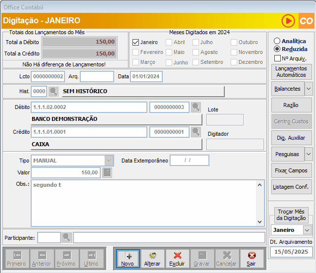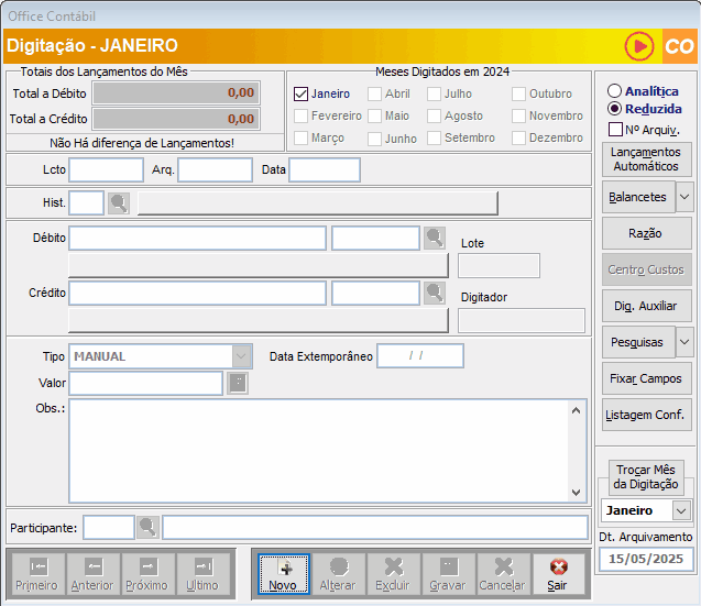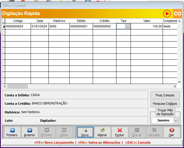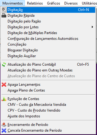 Acessar o menu "Movimentos -> Digitação> Realizar um lançamento, alterar e excluir um lançamento, realizar um