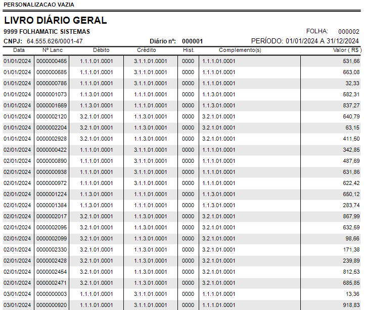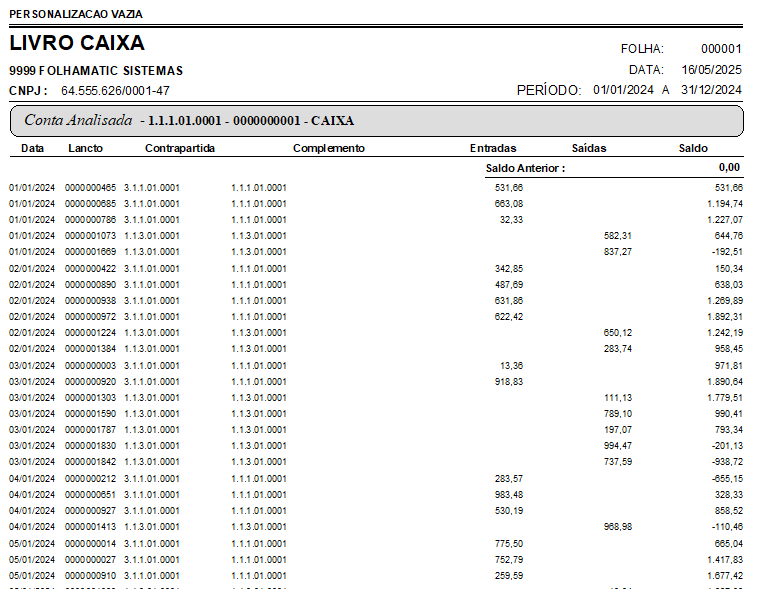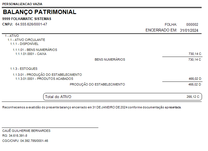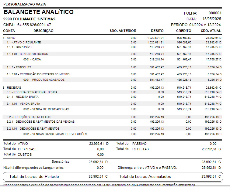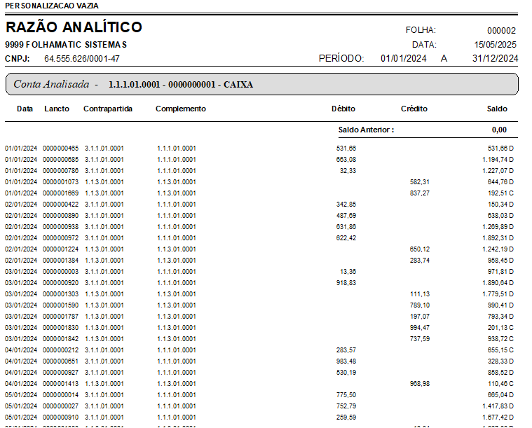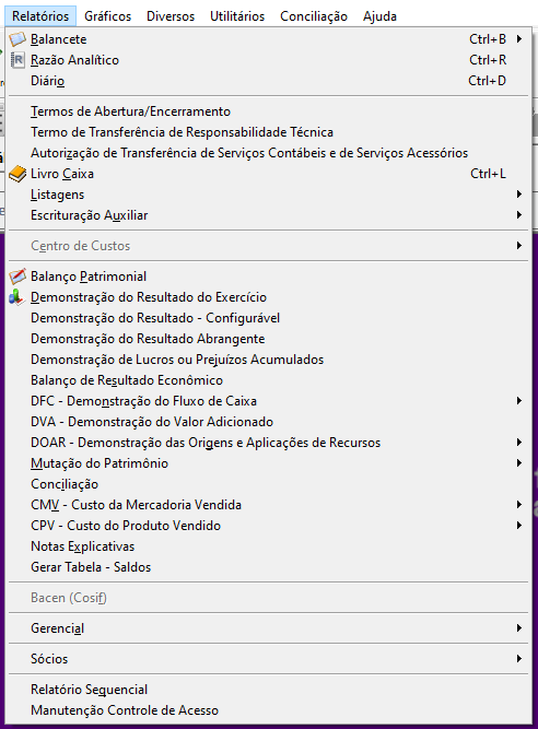 Emita os relatorios Razão, Diarios, Balancete, Blanaço Patrimonial, DRE